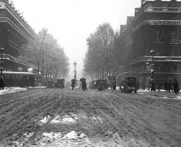 Les 14 et 15 novembre 1919, Paris est recouverte d’une épaisse couche de neige, atteignant une hauteur de 20 à 25 centimètres. À Besançon, une accumulation similaire de 25 centimètres est enregistrée, marquant ainsi l’une des plus importantes chutes de neige pour un mi-novembre depuis 1887. Ce mois de novembre 1919 est considéré comme le plus froid de l’ère moderne en France. Le paysage urbain est alors transformé alors que certains arbres encore feuillus croulent sous la neige.