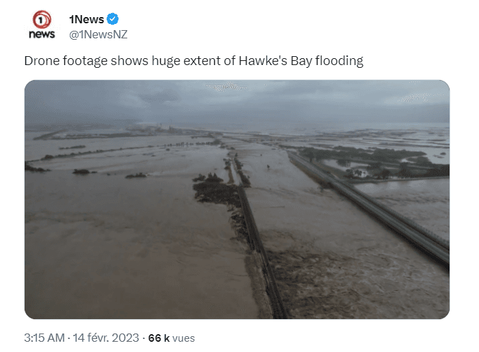 Inondations majeures dans la région de Hawke's Bay (Nouvelle-Zélande) le 13 février 2022 - via 1News