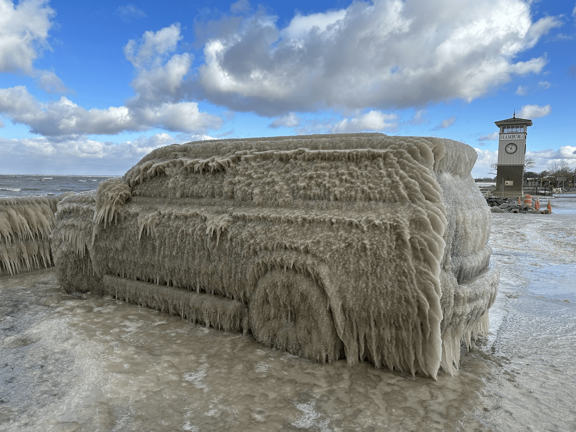 Tempête de glace à Buffalo sur les bords du Lac Erie ce dimanche 19 mars 2023 - via BuffaloWeather
