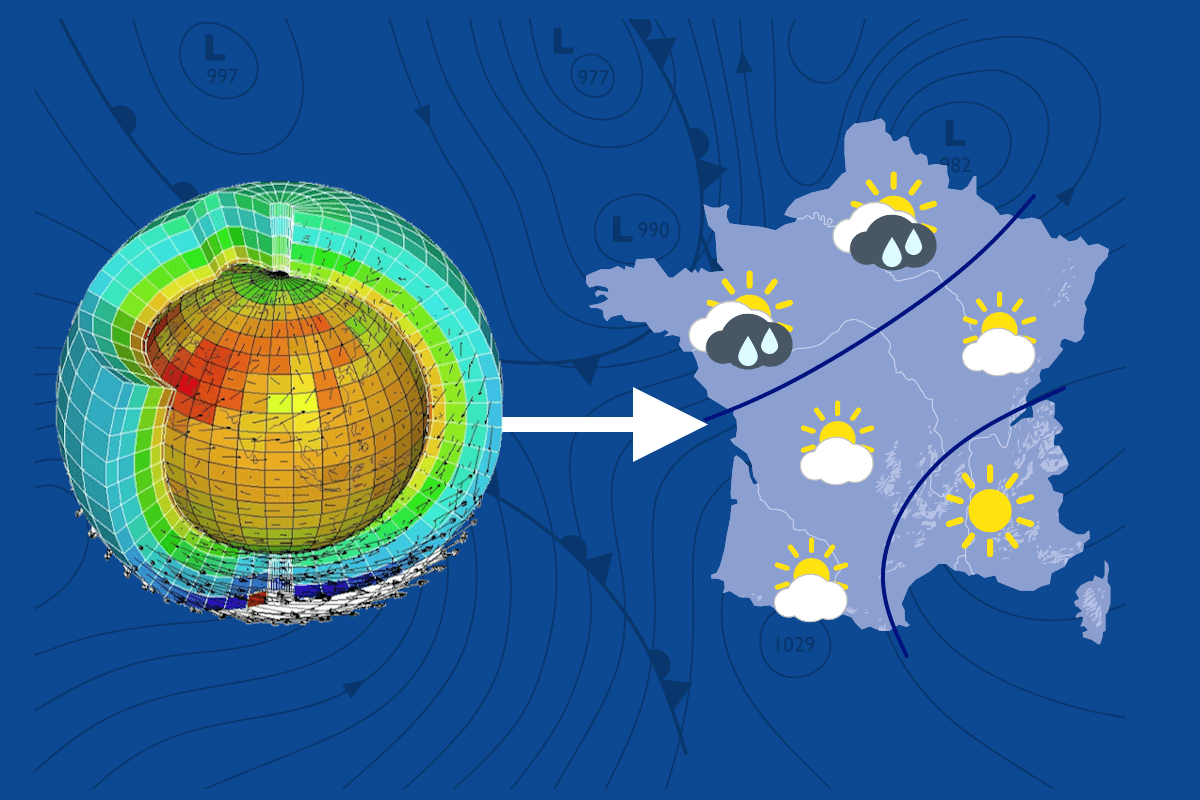 Schéma des différentes étapes de la prévision météo - Météo France