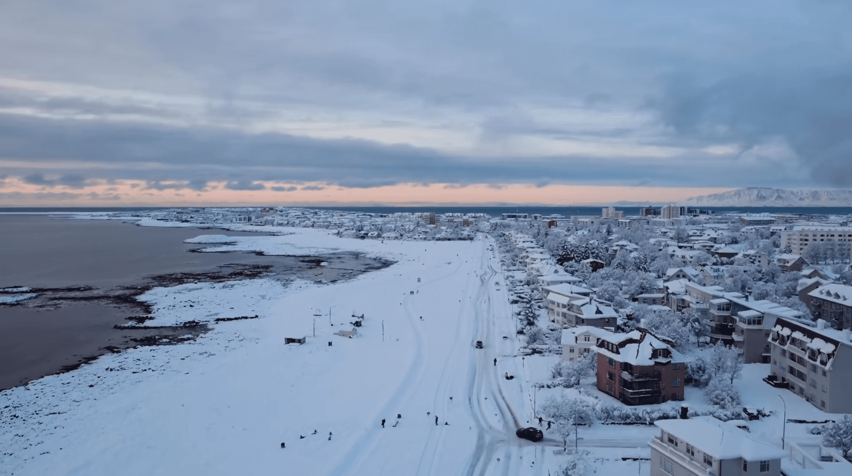 Au lendemain de la tempête de neige, les paysages étaient superbes ce mercredi 29 octobre 2025, comme le montre la vue aérienne ci-dessous. Un épais manteau blanc a recouvert la capitale islandaise, à l'image des tempêtes de neige survenant en plein cœur de la saison hivernale. D'ailleurs, la neige fond très peu puisqu'un froid d'hiver s'est installé. Ce mercredi, la température maximale à Reykjavik ne fut que de +0,2°C.