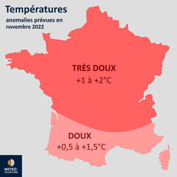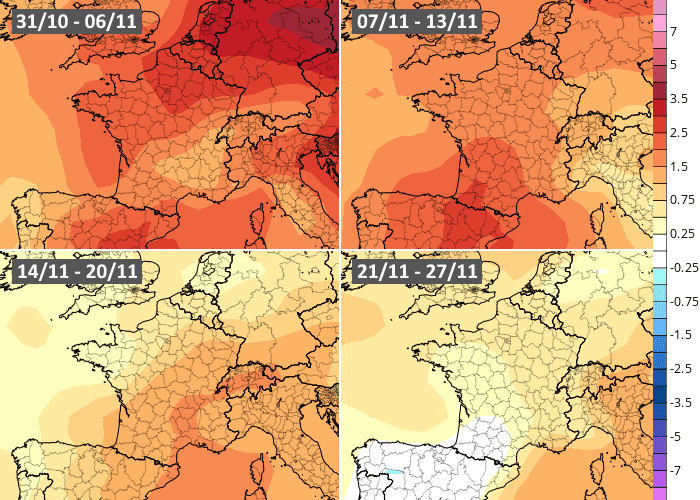 Projection de l'anomalie thermique en France au mois de novembre 2022 – Météo Villes