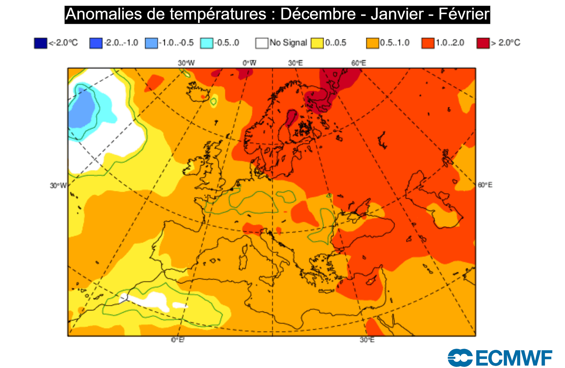 Anomalies de températures pour l'hiver 2025-2026 – ECMWF