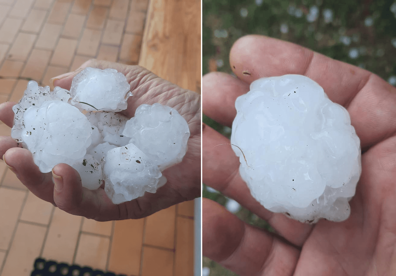 Gros grêlons sous orage à Saint-Marcel-de-Félines (Loire) ce mercredi 7 septembre 2022 - photo Jessica Perez