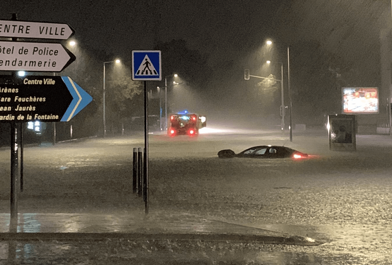 Nîmes inondée dans la nuit du mardi 6 au mercredi 7 septembre 2022 - via @RaphBtd75 sur Twitter