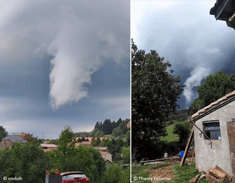En milieu d'après-midi ce mercredi, une cellule orageuse a donné naissance à une tornade sur la commune de Clavières dans le sud-est du département du Cantal. Le phénomène a touché terre et engendré des dégâts, arrachant des arbres et un pylône électrique. Par ailleurs, la toiture d'une maison et celle d'une ferme ont été arrachées. Aucun blessé n'est à déplorer.